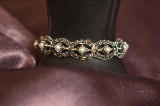 Vintage Charm Silver Bracelet with Carnelian Accents