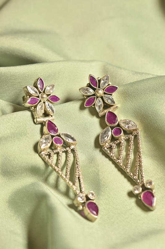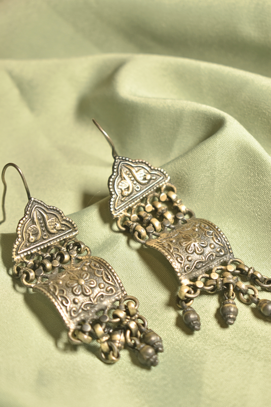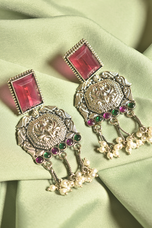 Heritage Elegance Antique Silver Danglers with Gemstone Highlights