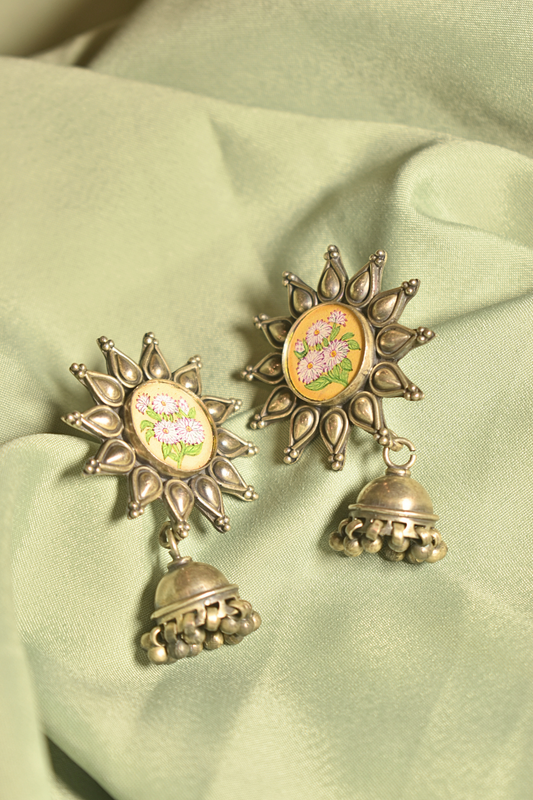 Artistic Bloom Hand-Painted Floral Jhumka Earrings