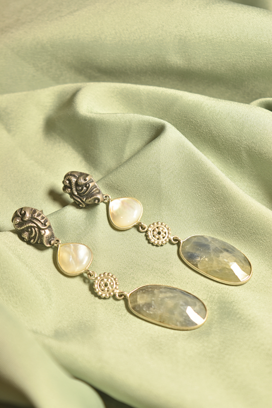 Moonlit Elegance Layered Gemstone Drop Earrings