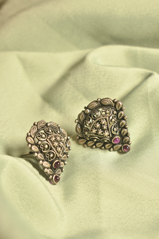Ethnic Silver-Toned Triangle Stud Earrings