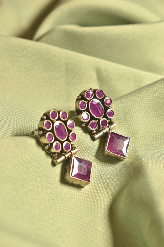Antique Pink Stone Drop Earrings