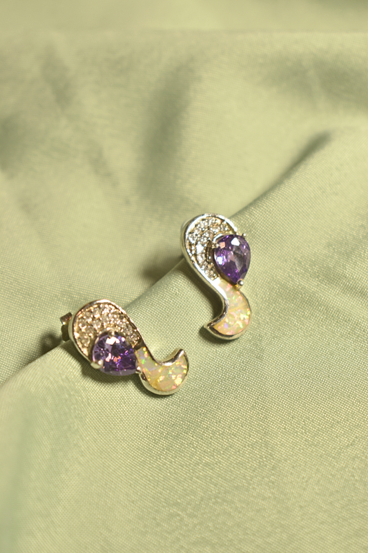 Amethyst and Opal Twist Earrings