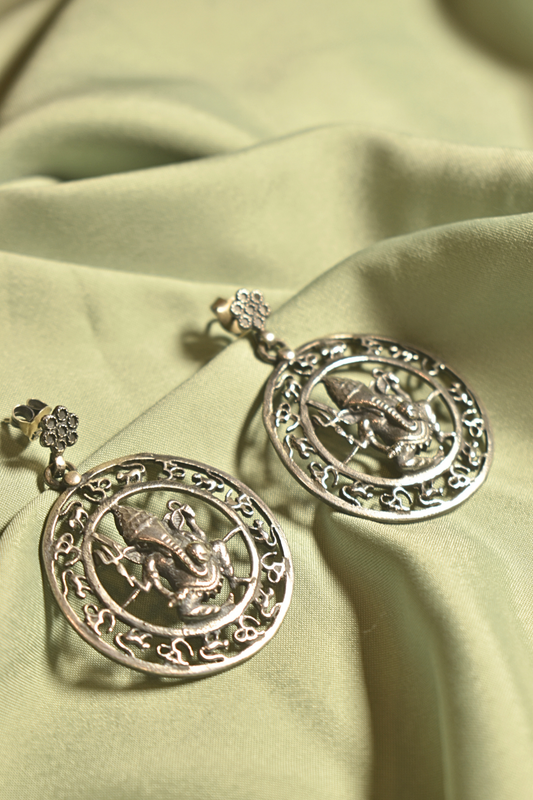 Sacred Ganesha Motif Silver Earrings