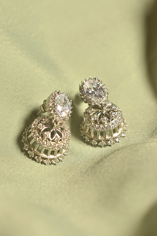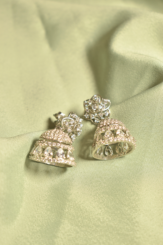 Graceful Chimes Sparkling Silver Jhumka Earrings