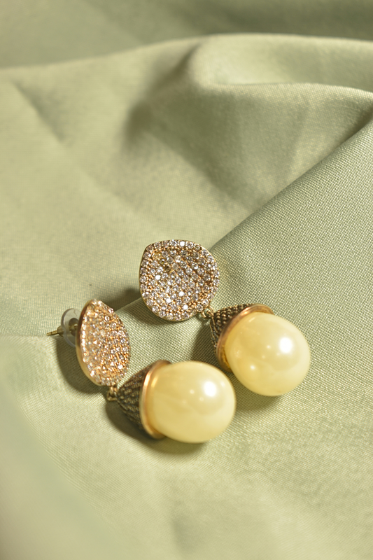 Golden Glow Luxe Pearl Drop Earrings with Crystal Finish