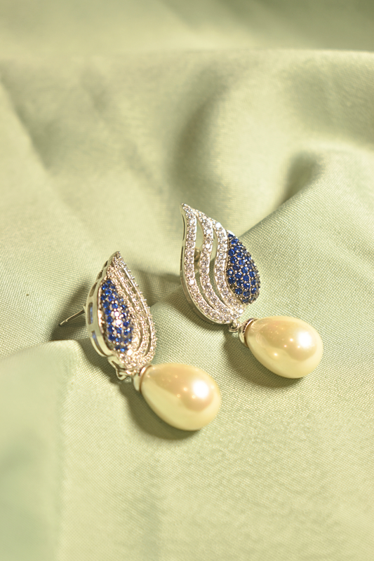 Oceanic Grace Sapphire Silver Earrings with Pearl Drops