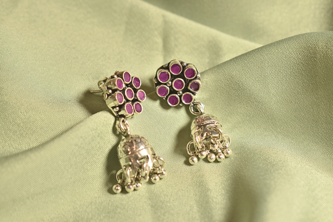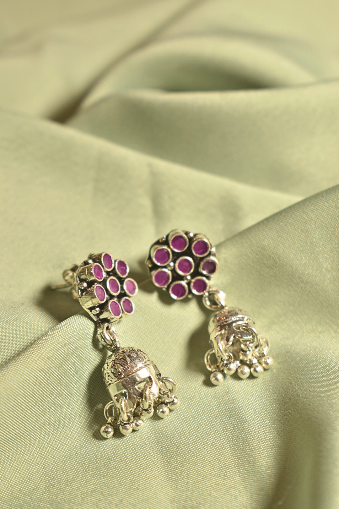 Blooming Grace Floral Silver Earrings with Jhumka Charm