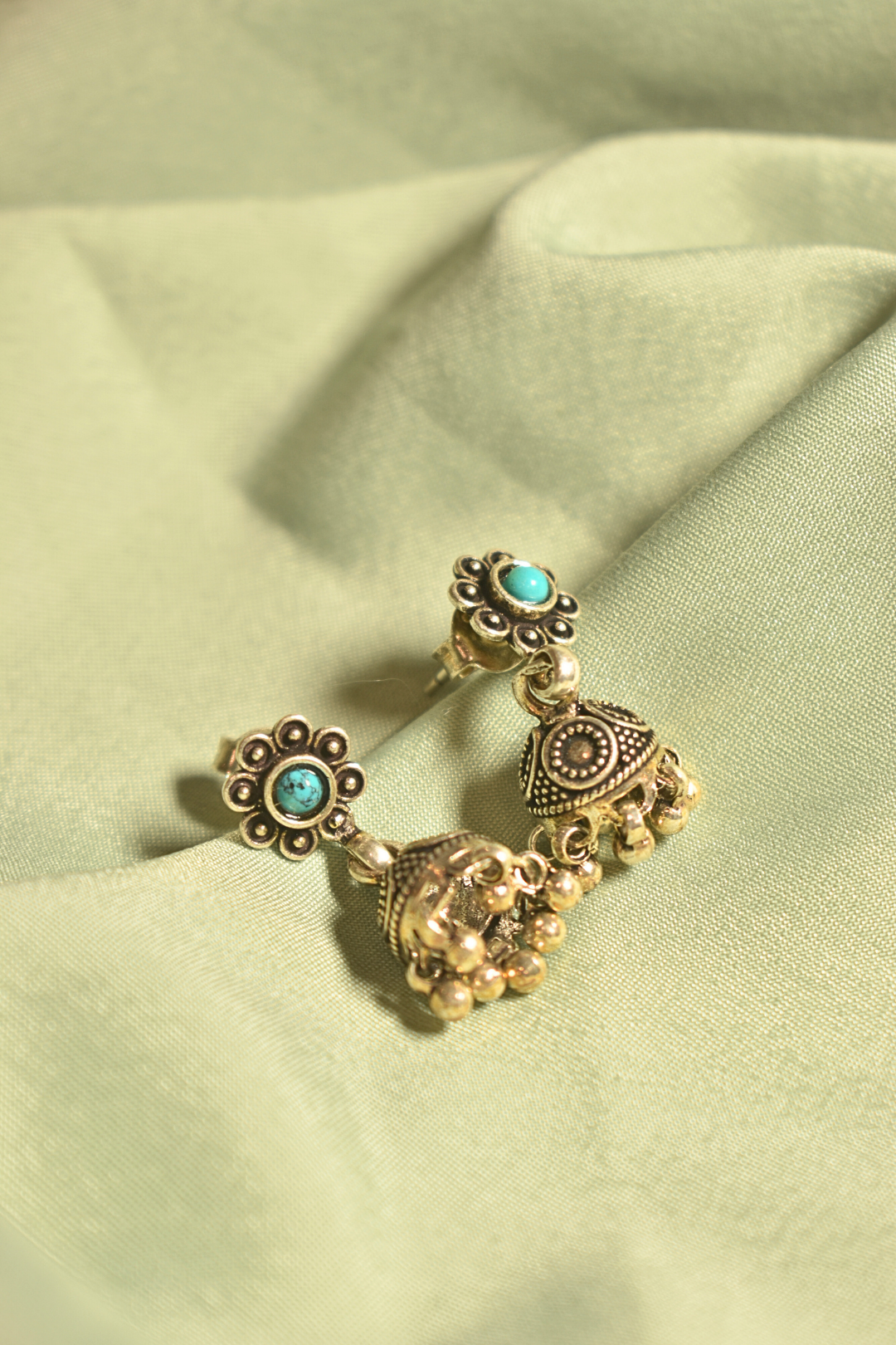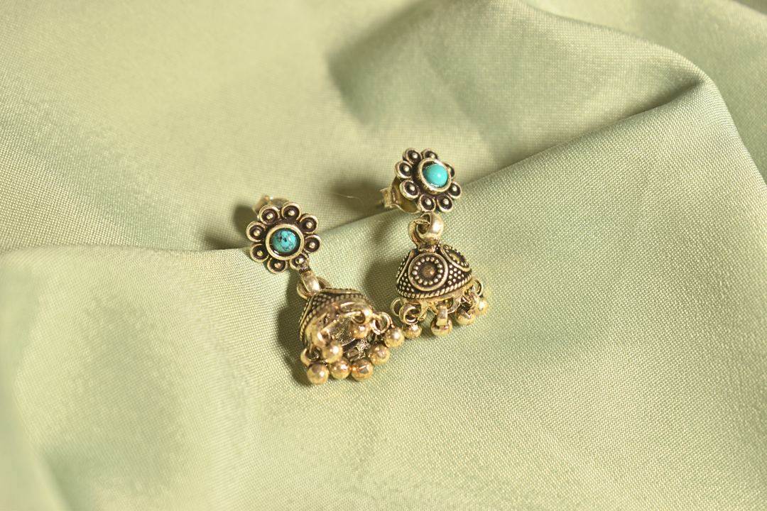 These Bohemian Turquoise Jhumka Earrings are the perfect blend of Bohemian style and elegant design. Crafted with intricate details, these earrings feature vibrant turquoise stones that add a pop of color to any outfit. Handmade with high-quality materials, these earrings are the perfect accessory for a unique and stylish look.