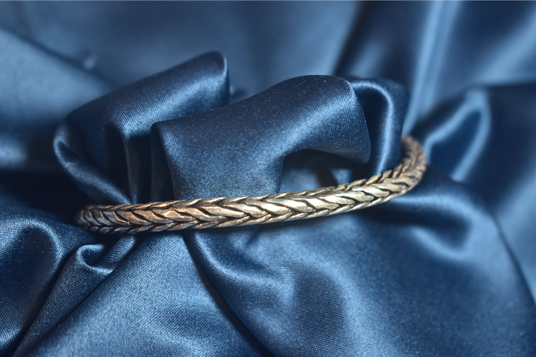 This Braided Silver Bangle adds a touch of elegance and sophistication to any outfit. Made from high-quality silver, the braided design gives it a unique and eye-catching look. Its durable construction ensures long-lasting wear, making it a great investment piece. Elevate your style with this stunning bangle.