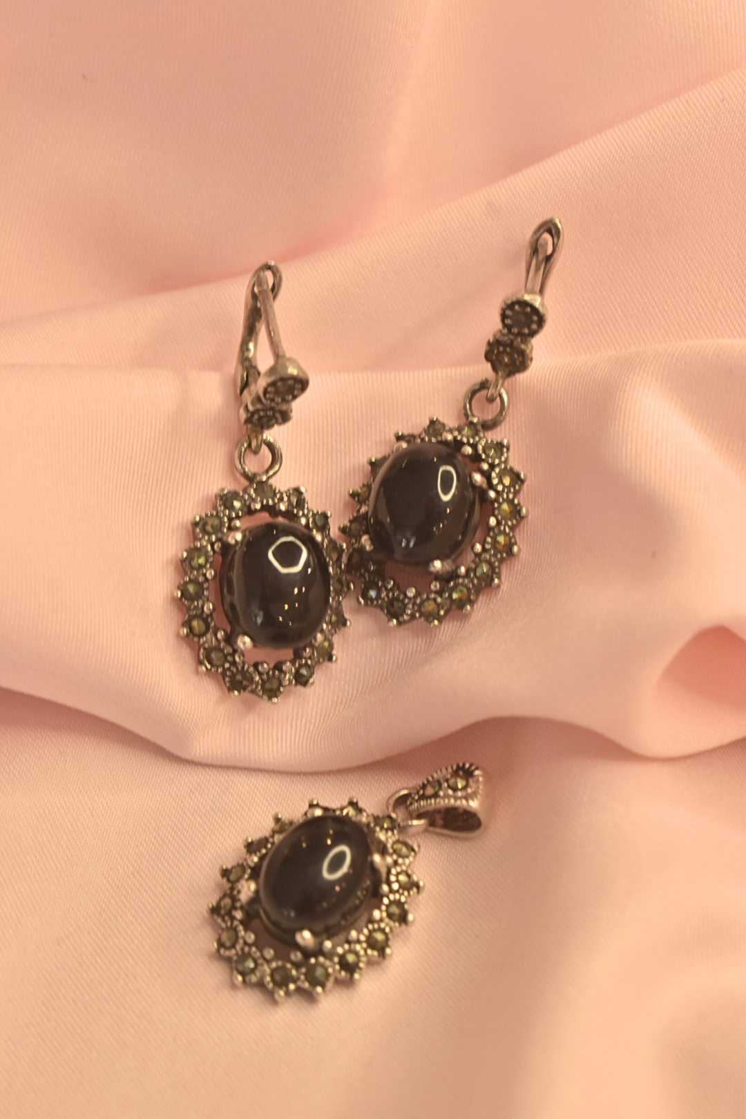 Add elegance to your look with our Classic Oval Earrings and Pendant Set. Made with high-quality materials, this set features timeless oval-shaped designs. Perfect for any occasion, this set will elevate your style with a touch of sophistication.