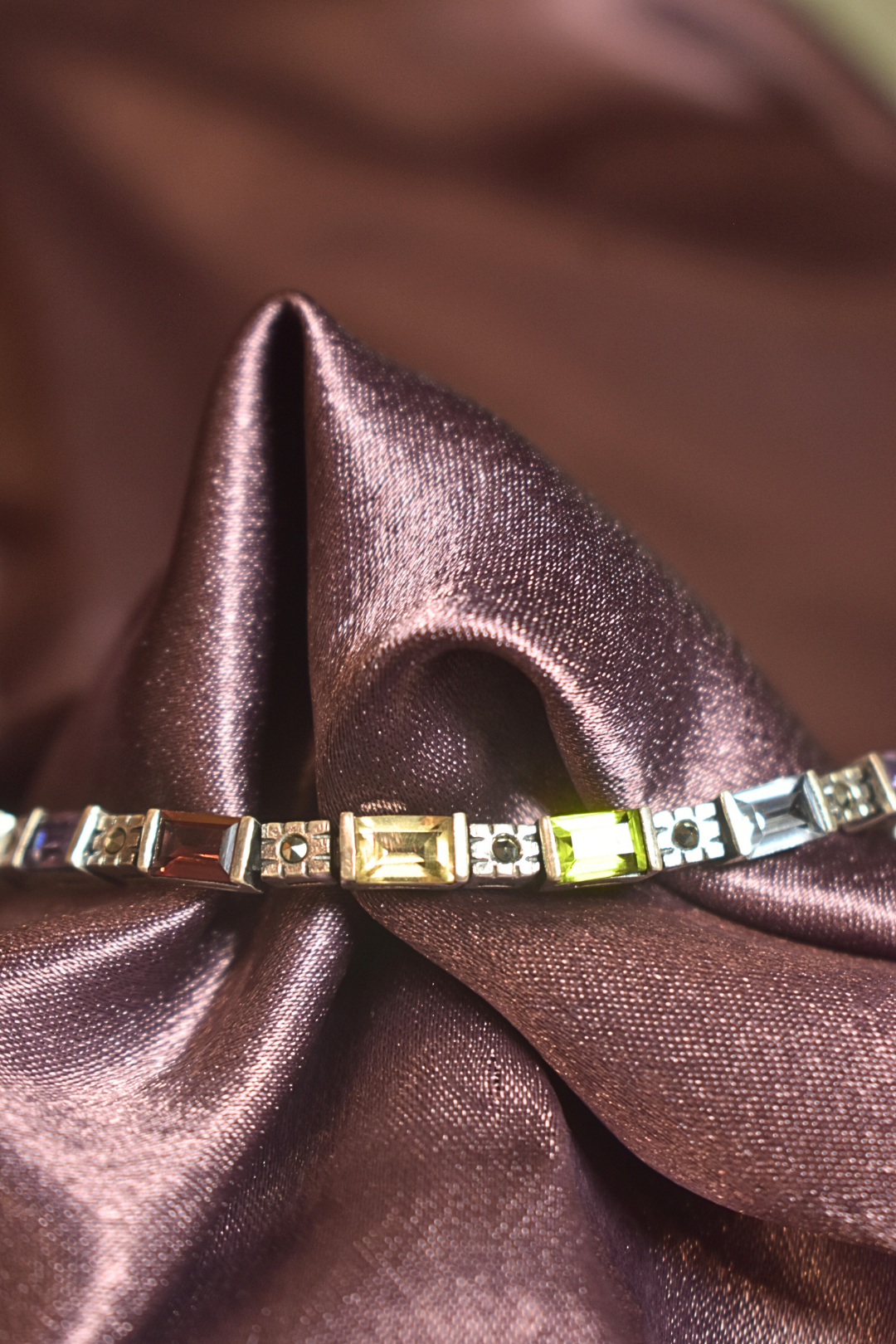 This Colorful Gemstone Silver Bracelet enhances any outfit with its vibrant and eye-catching gemstones. Made with high-quality silver, it adds a touch of elegance to your look. Perfect for a night out or special occasion, this bracelet is a must-have for any fashion-forward individual.