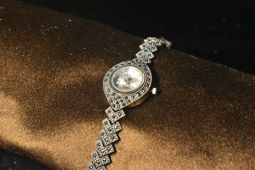 Indulge in timeless sophistication with our Elegant Crystal-Studded Silver Watch. Featuring sparkling crystals and silver-toned stainless steel, this timepiece exudes luxury and elegance. Make a statement with every second in this stunning watch, perfect for any occasion. Upgrade your style game and elevate your look with our Elegant Crystal-Studded Silver Watch.