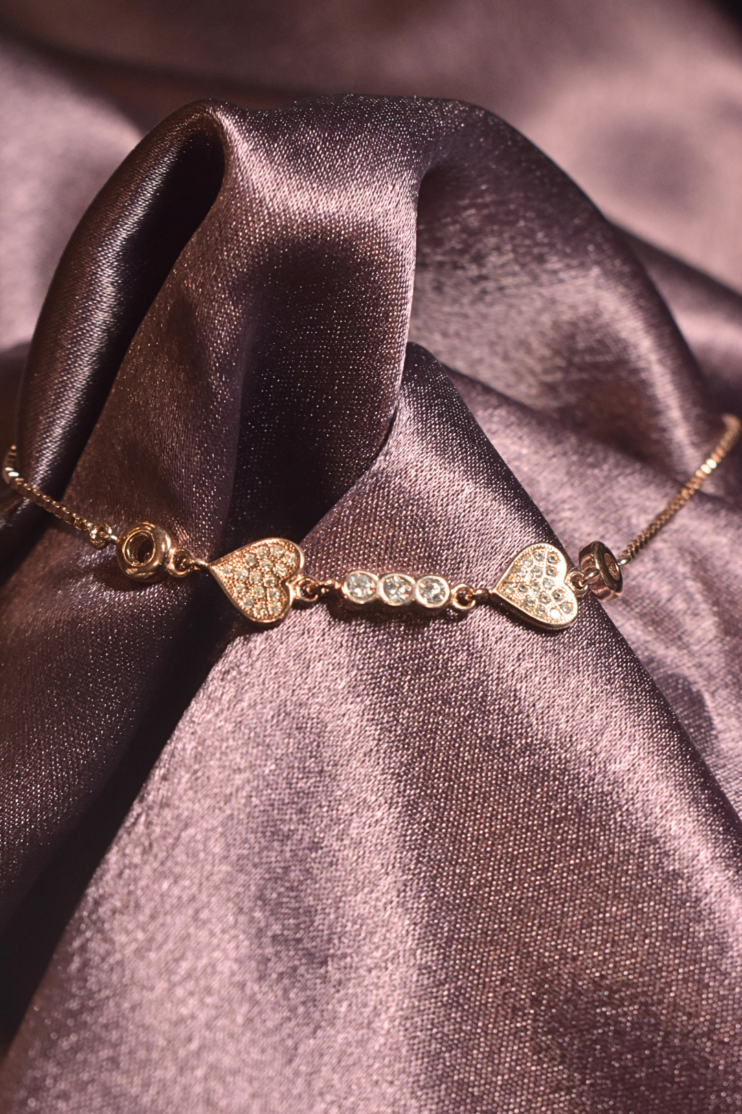 Crafted with elegant design and sparkling crystal details, this heart charm bracelet is a must-have accessory. The delicate heart charm adds a romantic touch, while the crystal details provide a touch of glamor. A perfect addition to any outfit, this bracelet makes a timeless statement of elegance and sophistication.