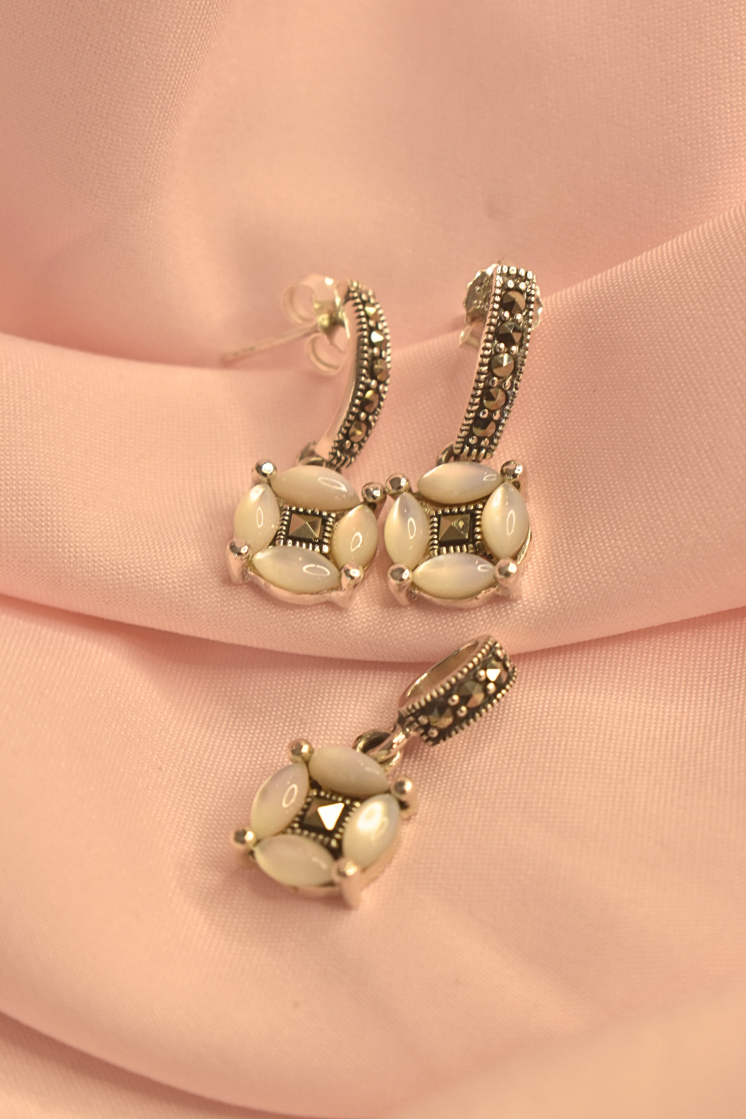 Elegant Mother-of-Pearl Earrings and Pendant Set