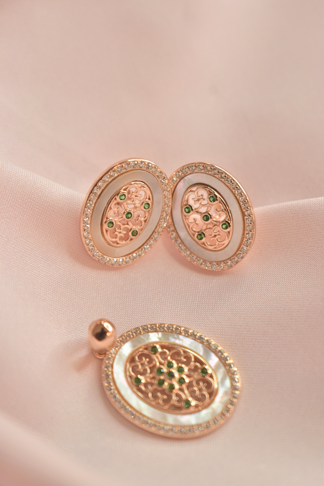 These elegant oval earrings with pendant are expertly crafted with a stunning design. The oval shape adds a touch of sophistication and the pendant adds a unique flair. Made from high-quality materials, these earrings are lightweight yet durable, making them perfect for any occasion.