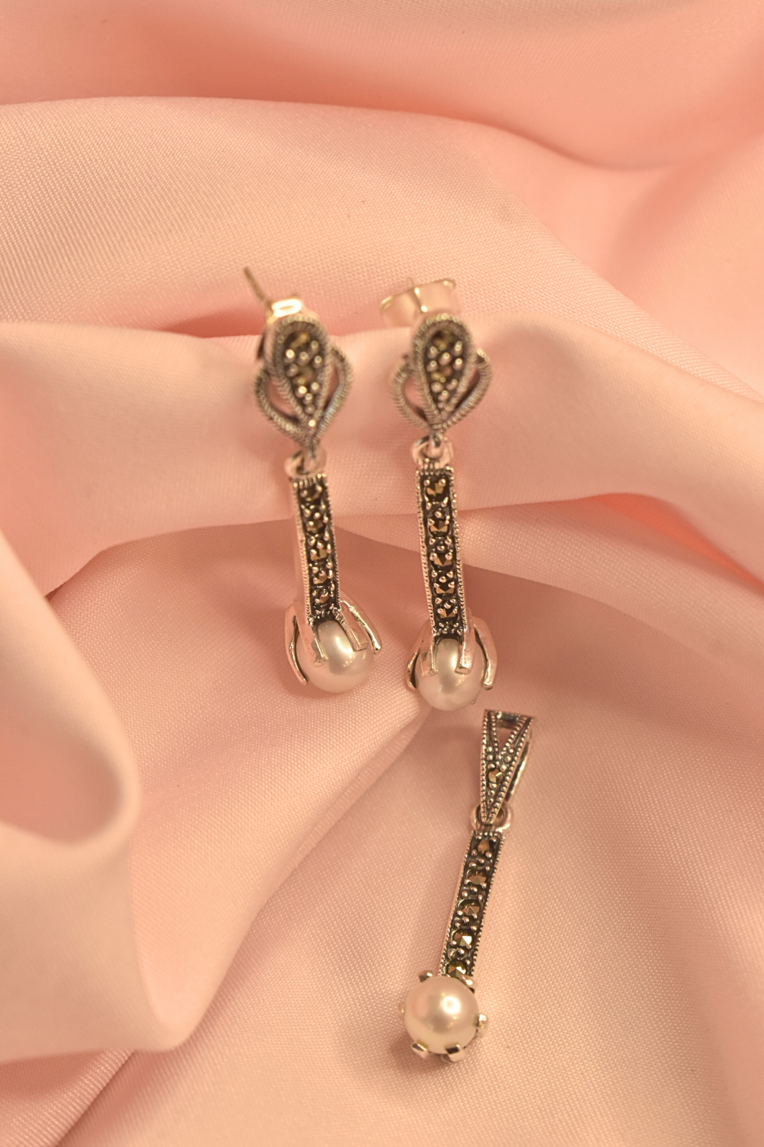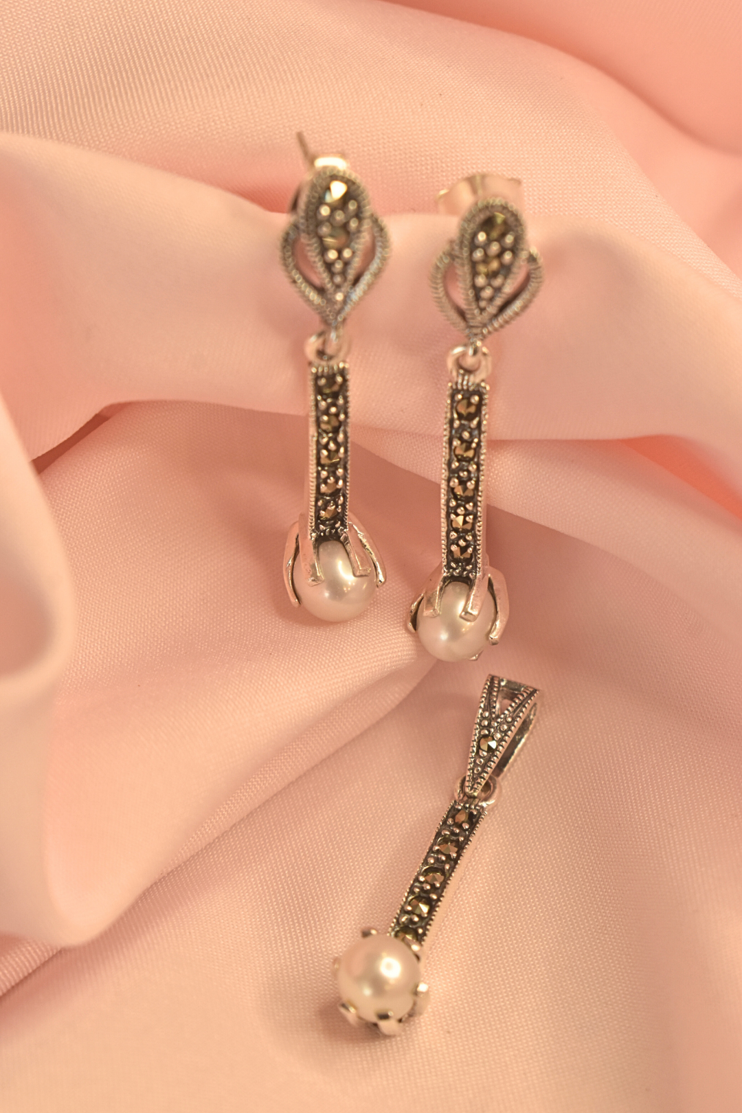 Elegant Pearl Drop Earrings and Pendant Set