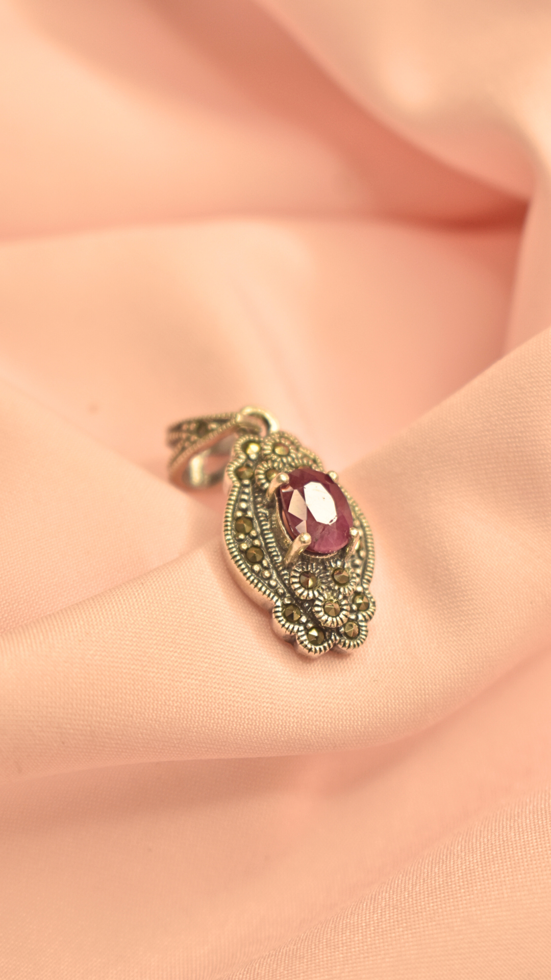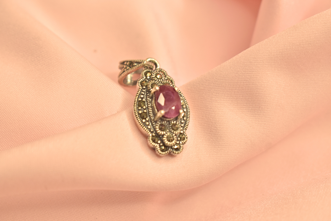 Elegant Silver Pendant with Purple Stone and Filigree Detailing