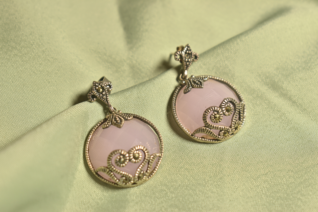 Ethereal Grace Pastel Pink Vintage Round Earrings