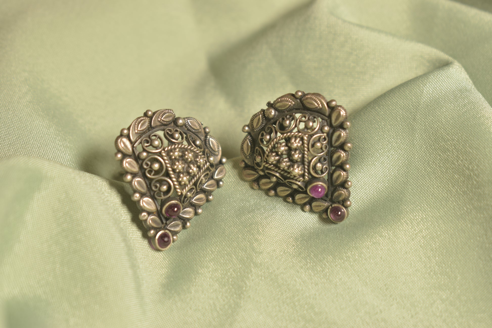 Experience the unique beauty of our Ethnic Silver-Toned Triangle Stud Earrings. Crafted with intricate geometric designs and silver-tone metal, these earrings are a perfect blend of traditional and modern. Their lightweight design and secure stud backing make them comfortable and easy to wear, while adding a touch of ethnic charm to any outfit. Elevate your style with these stunning earrings.