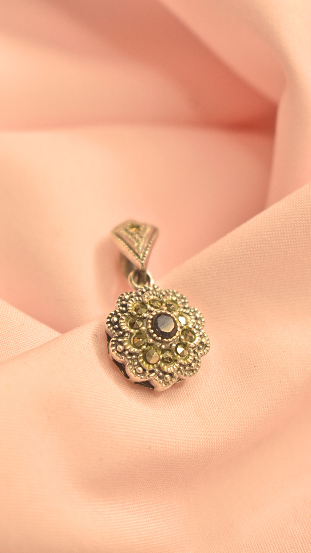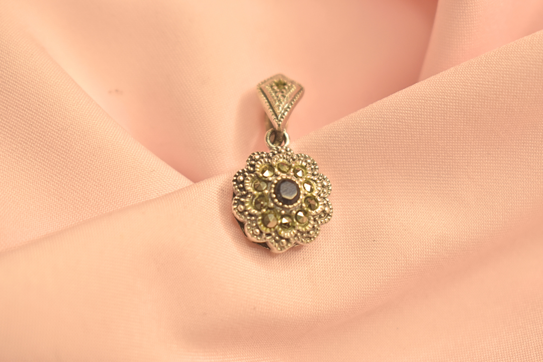 Floral Design Pendant with Sparkling Stones – Elegant Silver Jewelry