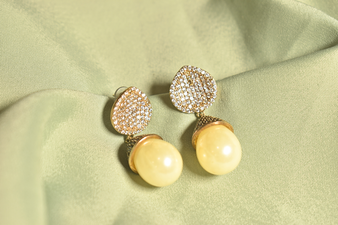Golden Glow Luxe Pearl Drop Earrings with Crystal Finish