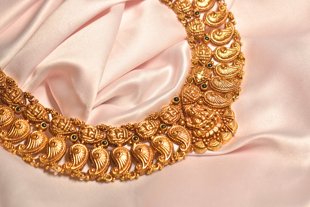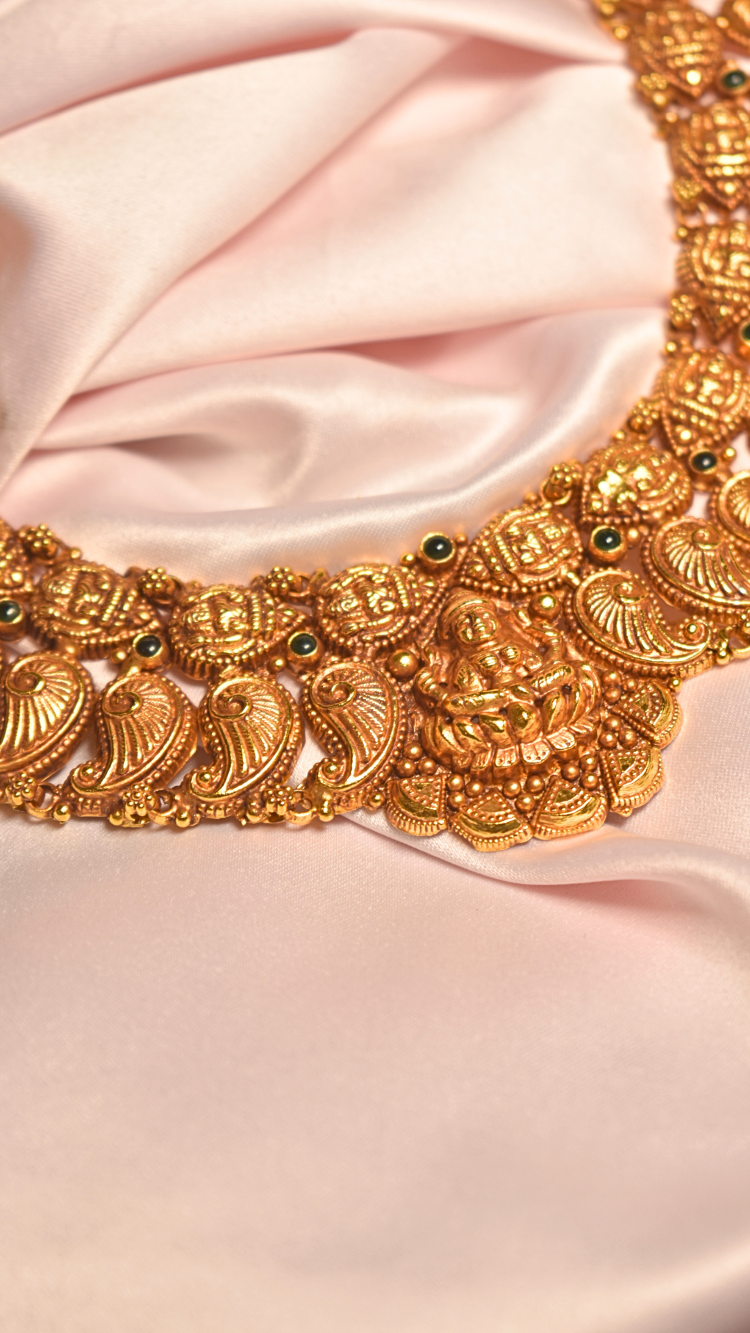 Experience the divine beauty of our Lakshmi engraved Gold-Plated Necklace. Crafted with precision and elegance, this necklace showcases intricate details of the goddess Lakshmi, bringing love, wealth, and prosperity with every wear. Perfect for any occasion, elevate your style and channel positive energy with this exquisite piece.