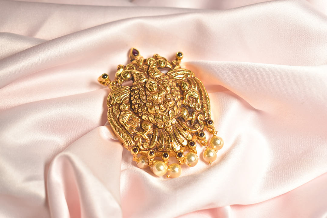 Majestic Gold Peacock Pendant with Pearl Detailing