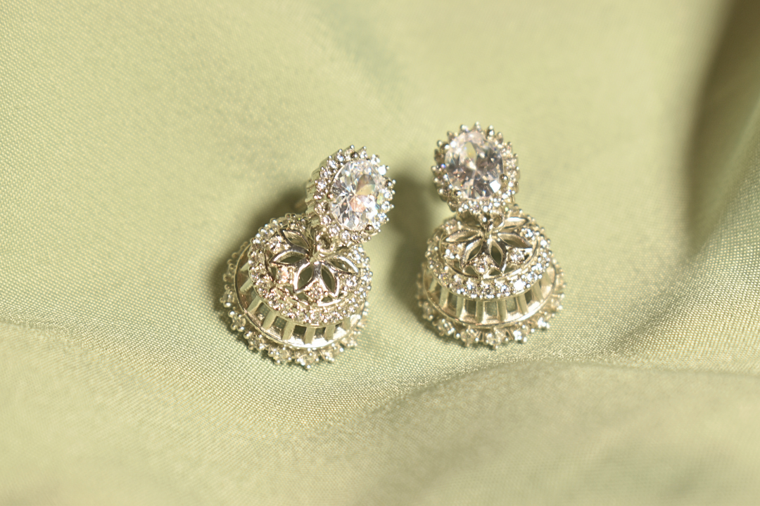 Regal Charm Crystal-Studded Silver Dome Earrings
