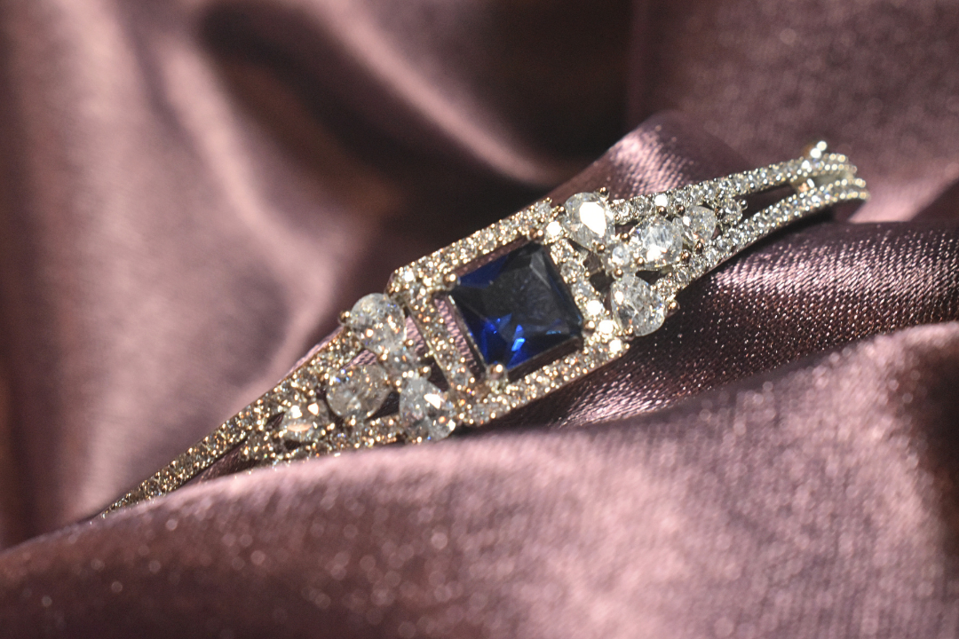 Royal Elegance Bracelet with Sapphire Centerpiece and Radiant Crystals
