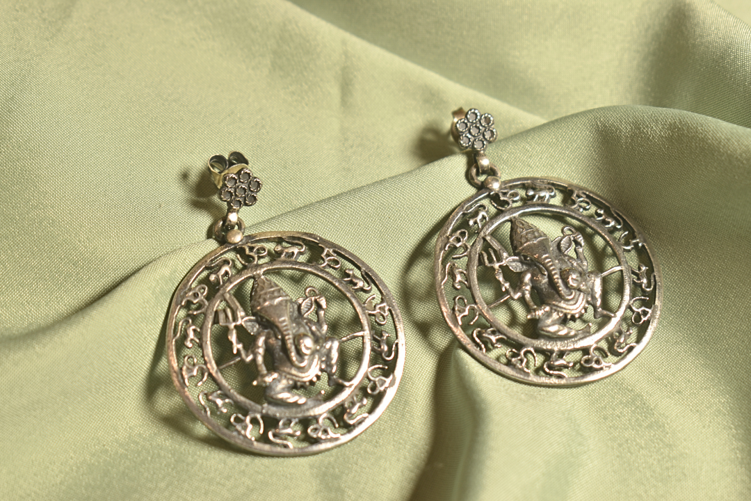 Sacred Ganesha Motif Silver Earrings