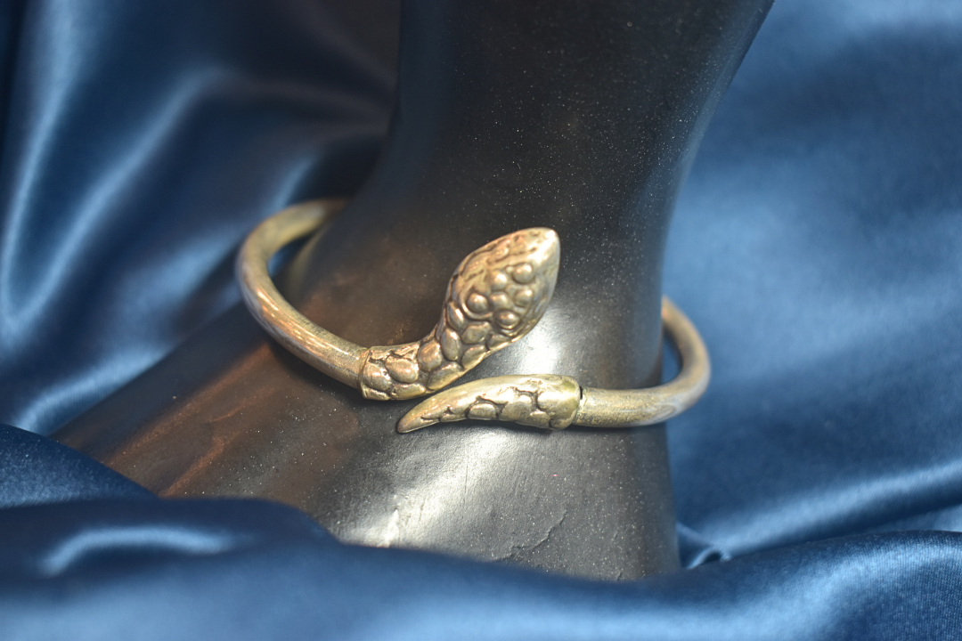 This elegant Silver Snake Motif Cuff is the perfect accessory to elevate any outfit. Made from high-quality silver, the snake motif adds a touch of sophistication and edge to your look. With its versatile design, this cuff can easily transition from day to night. Enhance your style with this must-have piece.