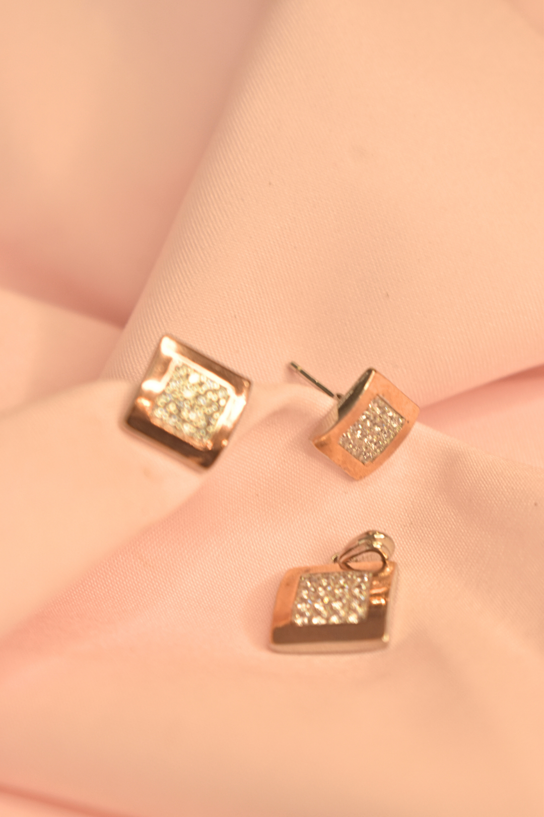 Square Radiance Rose Gold Crystal-Embedded earrings And Pendent