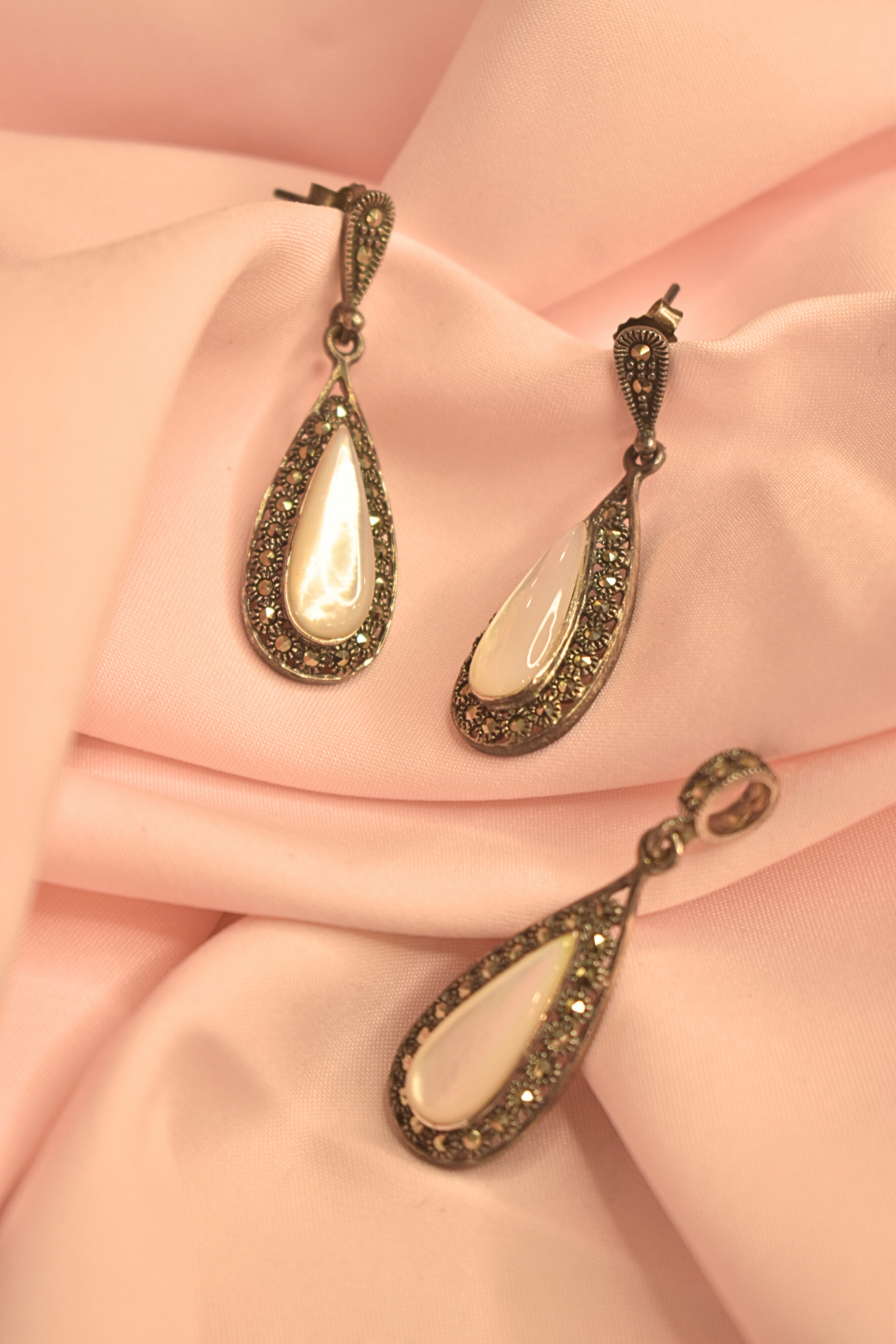 Teardrop Mother of Pearl Earrings and Pendant Set