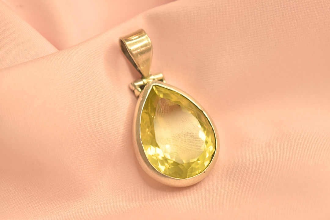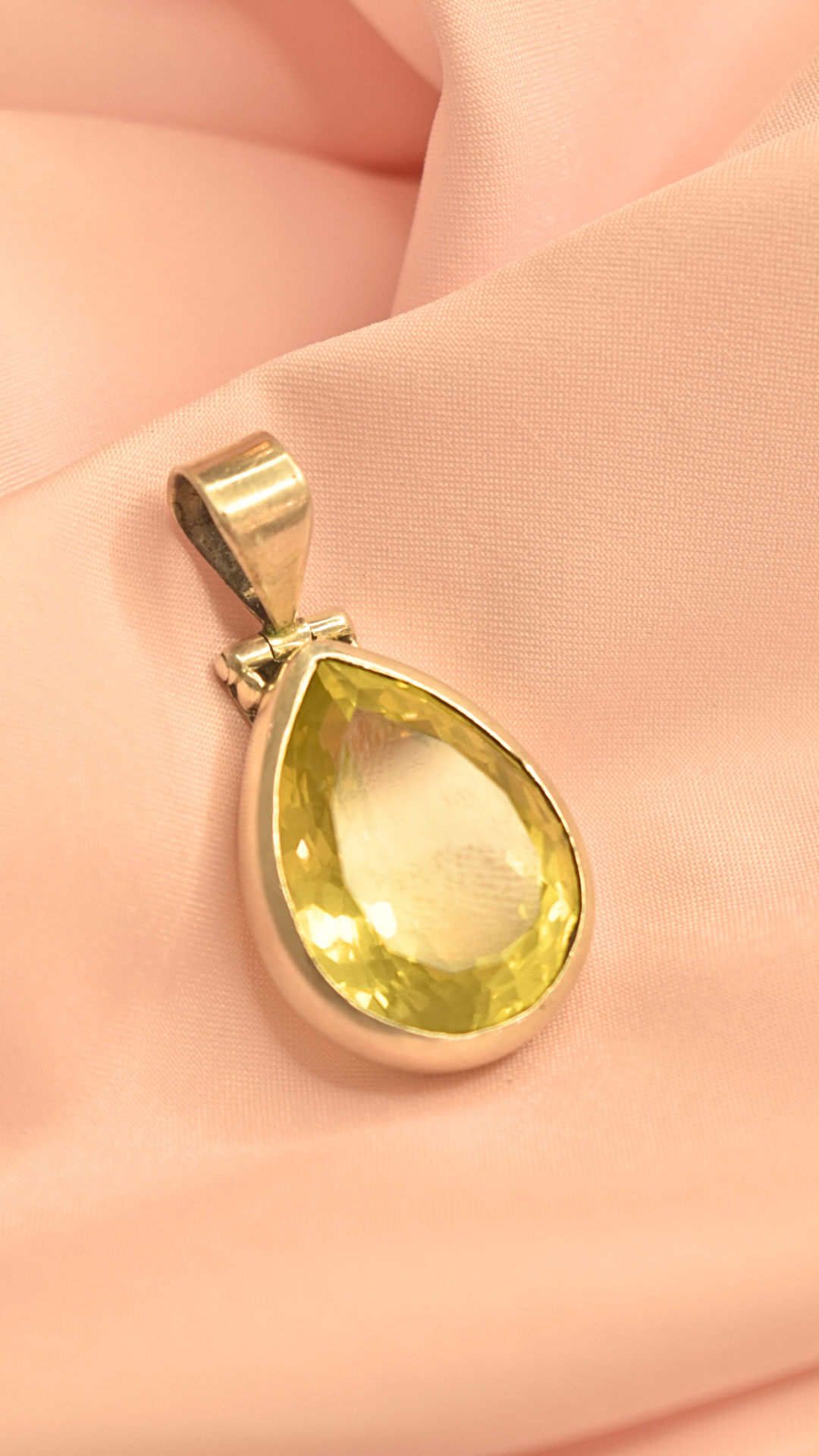 Teardrop Yellow Citrine Pendant in Polished Silver Setting