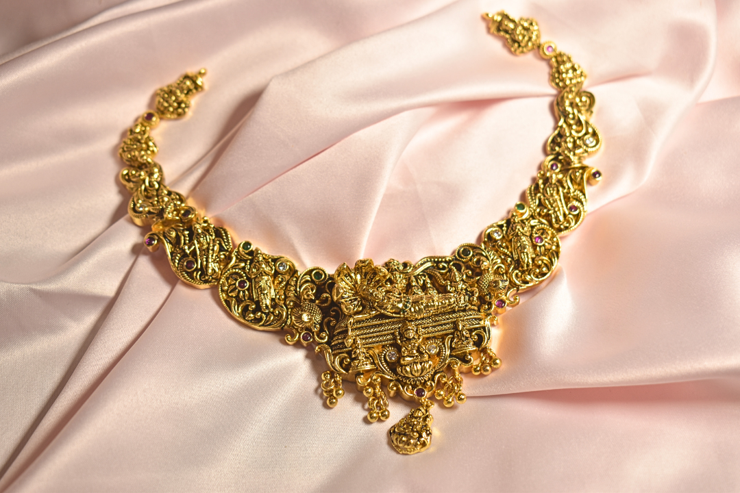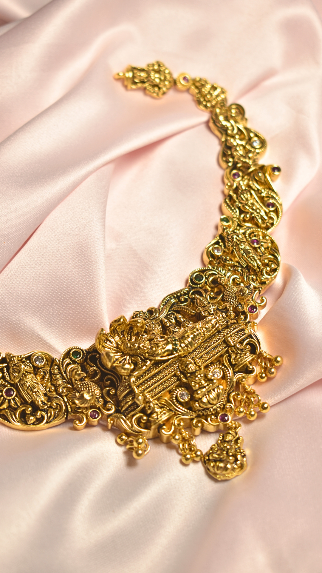Temple Design Gold-Plated Necklace with Lakshmi Motif