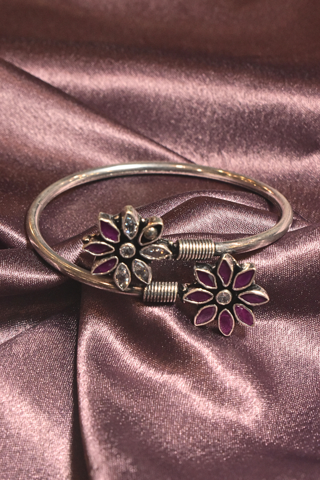 Vintage Floral Open Bangle with Intricate Gemstone Petals