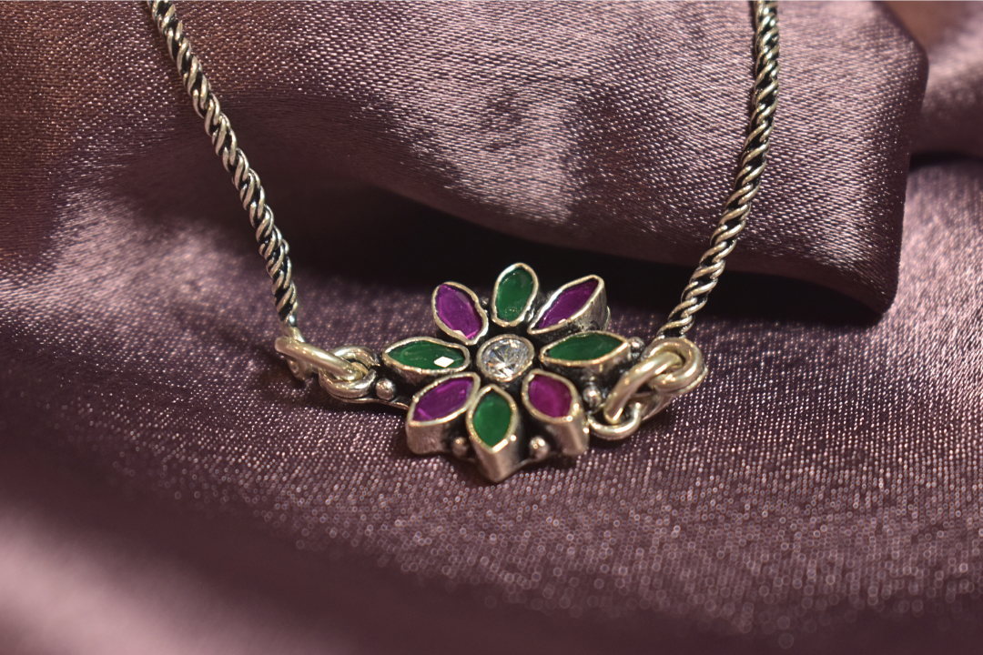 This vintage floral open bangle features intricate gemstone petals, exuding timeless beauty and elegance. Each petal is crafted with fine attention to detail, showcasing the skilled craftsmanship of this stunning piece. The perfect addition to any outfit, this bangle is a must-have for any fashion-forward individual.