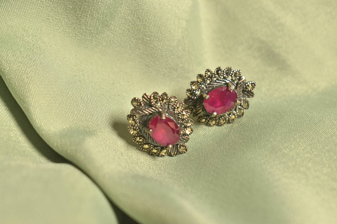 These Vintage Ruby Stud Earrings are a timeless and elegant addition to any jewelry collection. Made with high-quality rubies, these earrings add a pop of color and sophistication to any outfit. The vintage design also adds a touch of nostalgia and charm. Elevate your look with these exquisite earrings.
