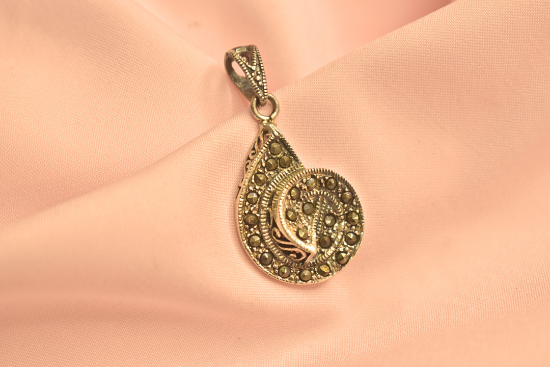 Vintage Teardrop Pendant with Intricate Detailing and Gemstone Accents